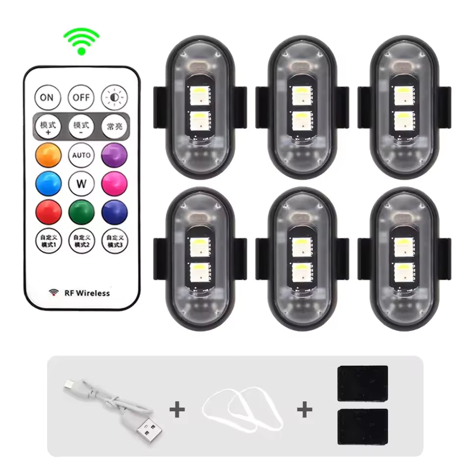 Enhance visibility and safety on every ride with our wireless remote-controlled LED strobe lights. Designed for motorcycles, bikes, drones, and scooters, these compact warning lamps deliver powerful anti-collision flashing to alert other road users. The intuitive remote control lets you activate strobe patterns instantly, keeping your hands on the handlebars. Durable construction withstands off-road conditions and weather exposure. Whether commuting or trail riding, these lights add a critical safety layer that riders depend on. Simple installation, reliable performance, maximum visibility.